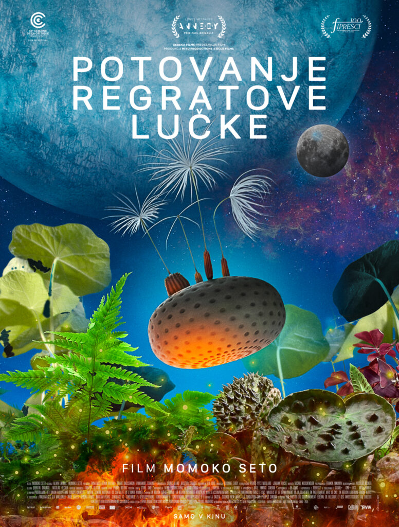Nekje med računalniško animacijo, makro fotografijo in posnetki v časovnih presledkih se nam razkriva nežna pripoved o svetu po koncu sveta. S planeta Zemlja po jedrski apokalipsi v stratosfero v iskanju novega doma odfrčijo štiri regratove semenke. Ko migrantske semenke posrka v črno luknjo, se znajdejo na planetu, ki je nenavadno lep in zlovešč hkrati. Prevažajo se na polžih lazarjih, bežijo pred požrešnimi paglavci in iščejo zemljo, v kateri bi lahko pognale korenine.